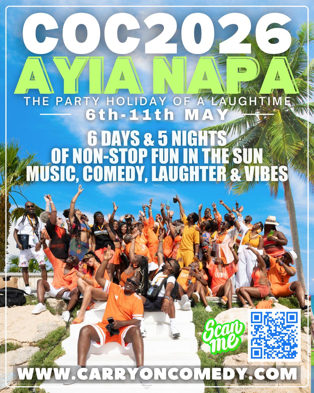 COC2026 returns to Ayia Napa for The Ultimate Party Holiday of a Laughtime, taking place 6th – 11th May 2026